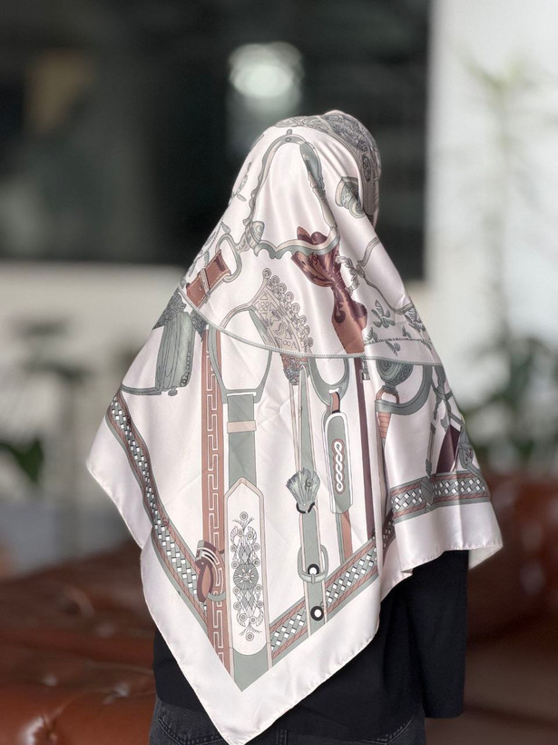 روسری ابریشم تویل وارداتی برند هرمس دوردوخت قواره ۱۲۵ کالکشنه عیدانه