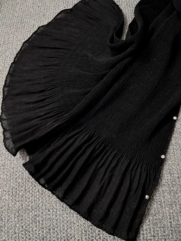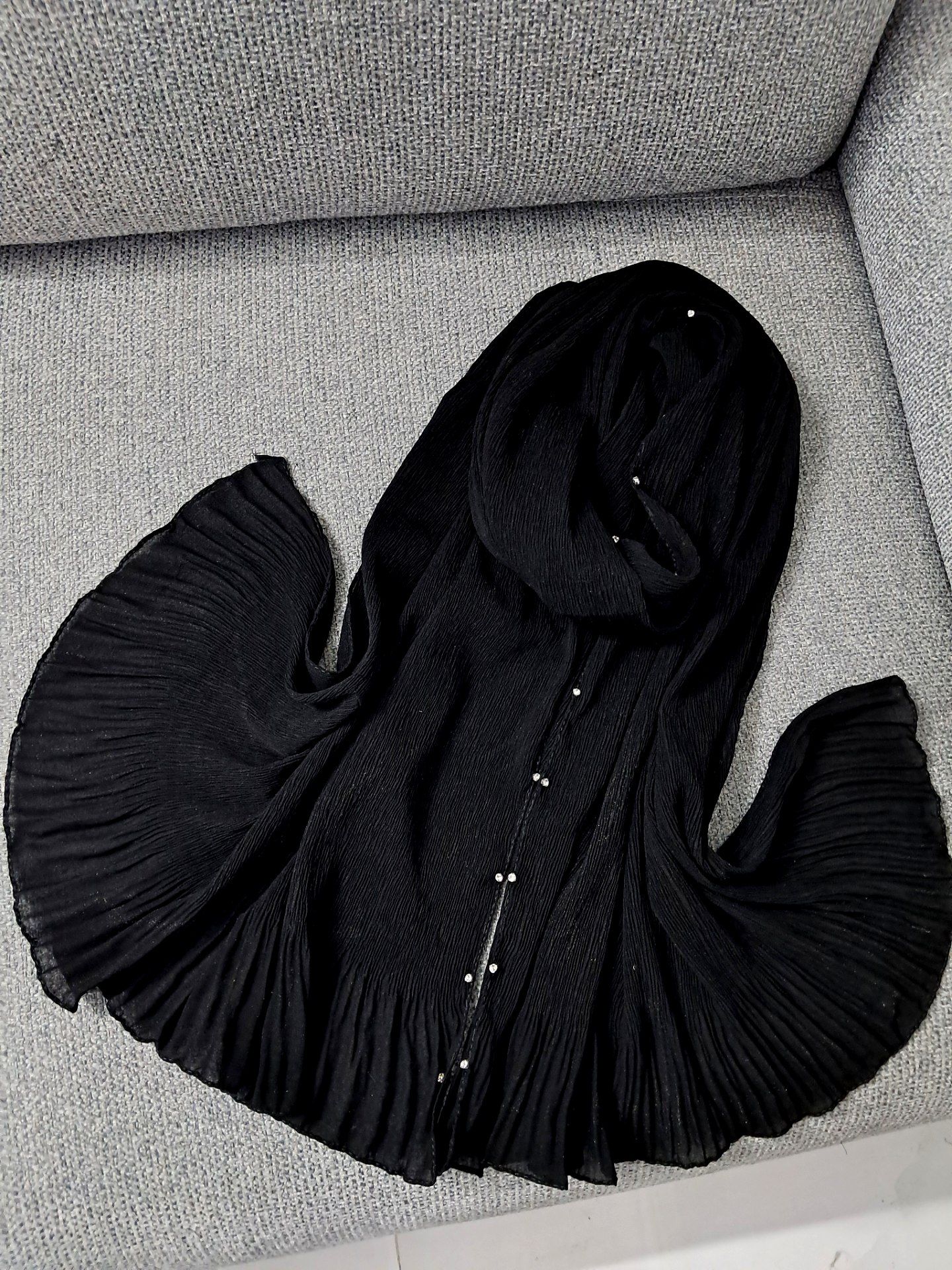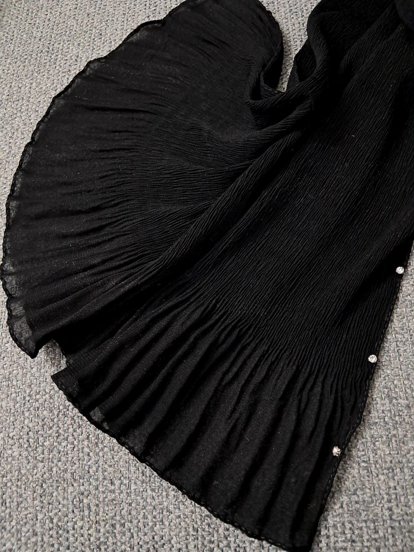 شال برشکا دنیز حاشیه دامنی جت بلک مشکی دور نگین قد ۱۹۰عرض ۷۰cm
