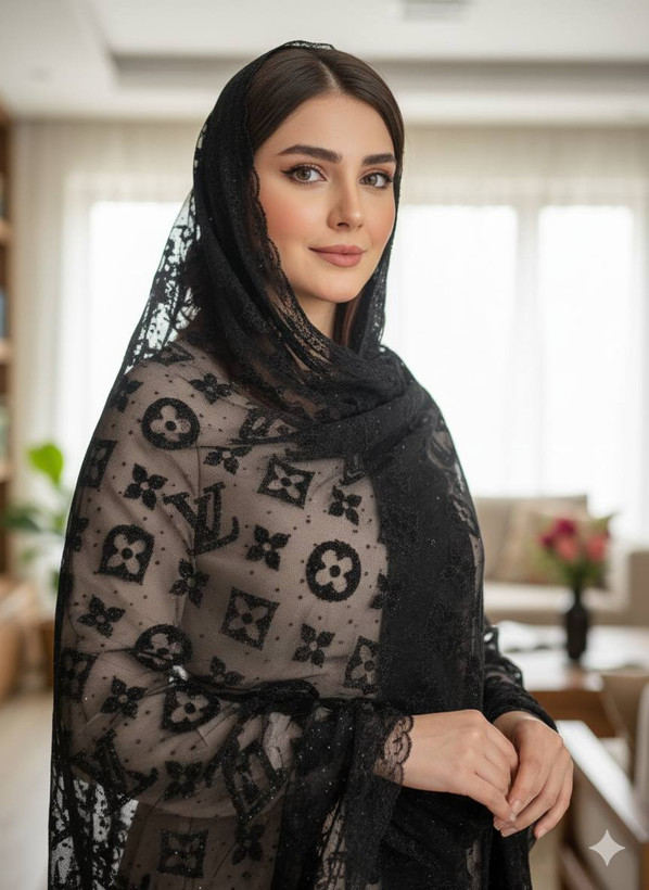 شال حریر مخمل کوب نگین دور دانتل مجلسی طرح مارک لویی ویتون
